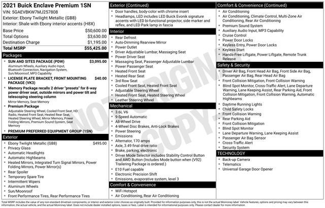 2021 Buick Enclave Premium Group AWD 9-Speed Automatic 3.6L V6 SIDI VVT