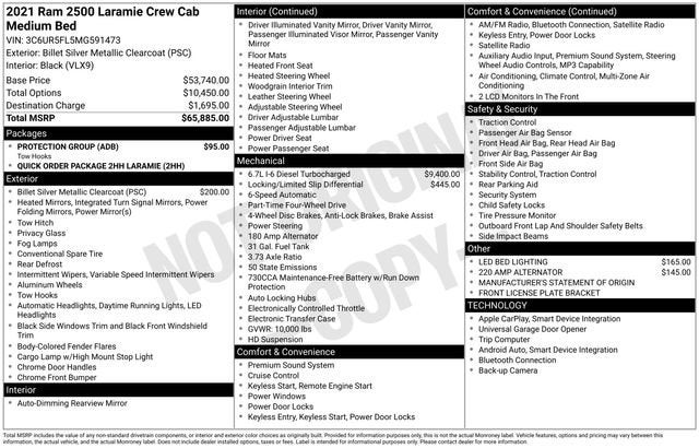 2021 Ram 2500 Laramie 4WD 6-Speed Automatic Cummins 6.7L I6 Turbodiesel