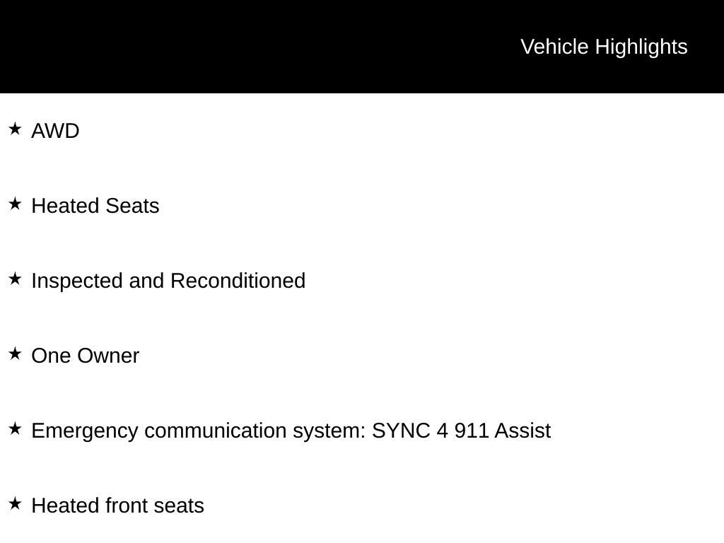- SYNC 4A w/Enhanced Voice Recognition -inc: 12" LCD capacitive touchscreen w/swipe capability, wireless phone connection, cloud connected, AppLink w/app catalog, 911 Assist, Wireless Apple CarPlay and Android Auto compatibility, digital owners manual, adaptive dashcards and conversational voice command recognition