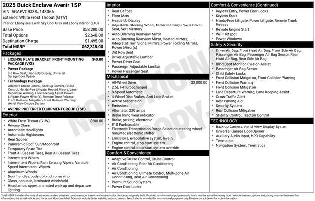 2025 Buick Enclave Avenir AWD 8-Speed Automatic 2.5L DOHC
